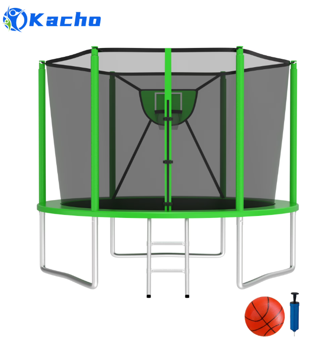 Kacho 10FT Trampoline with Safety Enclosure Net and Basketball Hoop: Jump Safely and Have Fun!