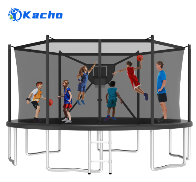 Kacho 16FT Trampoline with Safety Enclosure Net and Basketball Hoop: Jump Safely and Have Fun!